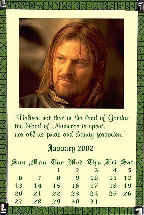 There are four commercial calendars featuring Boromir. There's also a link to a free downloadable Boromir calendar at the bottom of this page.