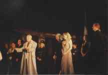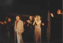 Following the evening performance on November 30th, actor Julian Glover gave a speech about AIDS and made an appeal for donations. Two pictures of the cast onstage during that speech are below. Click on the thumbnails to see larger pictures.