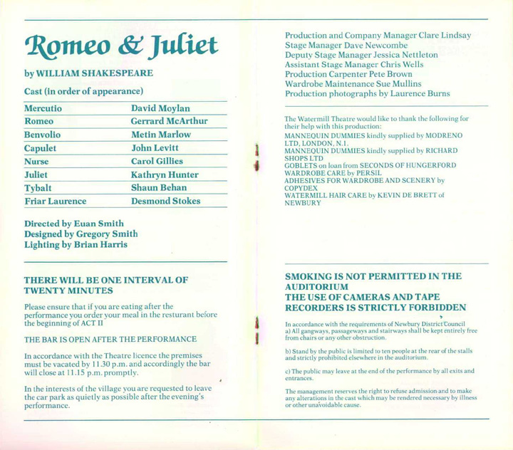 The Watermill Theatre Newbury, Berkshire May 11 - 28, 1983