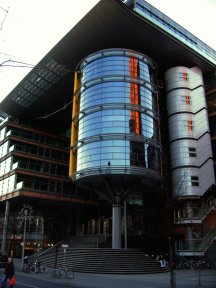 Historically the focal point of Berlin, with its luxurious hotels and restaurants, during the 1920's the Potsdamer Platz was the busiest crossroads in Europe. Having suffered almost total destruction during WWII, the Postdamer Platz was later to be divided in two by the Berlin Wall. Now a bustling construction site, this area was for many years completely deserted. Many offices, homes, shops and cultural institutes are currently under construction or newly completed. These include the futuristic-looking steel and glass architecture of the Sony Center (the company´s new European headquarters), which houses offices, apartments and an urban entertainment centre. Source: Berlin Info |
