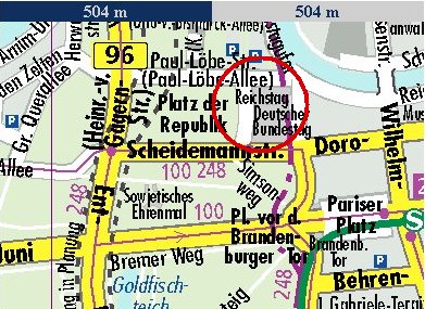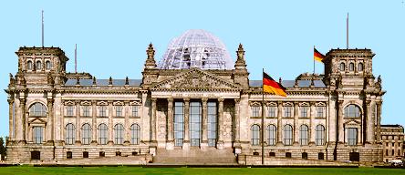 The architect in charge of the overhaul was Norman Foster, who also designed the new glass dome (accessible to the public). The Reichstag is located in Tiergarten, just north of the Brandenburg Gate. Text Source: Berlin City Guide Picture Source: http://home.t-online.de/home/fam.doubek/reichstg.htm |