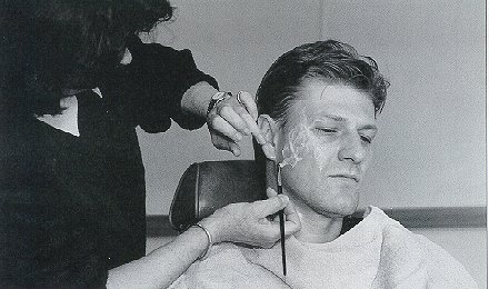 | "Because his character has a burn on the side of his face, Sean's in the makeup chair for an hour. I use Dermplast, a Swiss-made prosthetic developed over ten years by two chemists and a make-up artist. The stuff has to be melted in a microwave, then poured in to the cast and it goes into the fridge to set. I use five small pieces to build the scar on Sean's face every morning." - Linda Devetta, Makeup Supervisor (The Making of GoldenEye). |