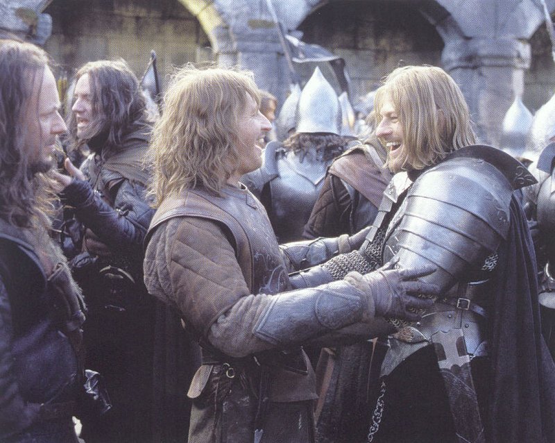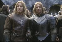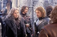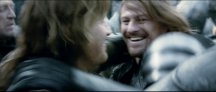 Boromir and Faramir share a moment of victory after the forces of Gondor reclaimed (part of) Osgiliath. This scene will probably appear on the Extended DVD for The Two Towers. Source: theonering.net |