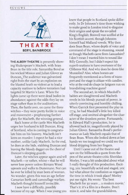 SEAN BEAN'S Northern accented Macbeth may have impressed most
