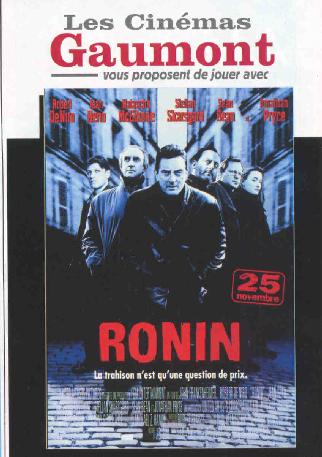 It all begins with a meeting in a warehouse in Paris, arranged by Deidre (Natascha McElhone from Surviving Picasso), an ex-Irish terrorist who has recruited five hired men to locate a mysterious briefcase. "It's something I want that others are holding on to," she says. Each member of the team has a speciality: Spence, the arms expert; Larry, the driver; Gregor, the electronics ace; the enigmatic Sam, and all of them are framed around Vincent, ex-agent of French Information. There are epic chases on the high ground around Nice, bloody gun fights at the arena at Arles, and traps along the banks of the Seine in this game of cat and mouse. A number of scenes were also filmed in the studios at Epinay. The international cast includes skater Katerina Witt as a figure skating champion who is the mistress of a Russian mob leader; and Jonathan Pryce as an Irish terrorist. Ronin was filmed during four month shoot beginning in November 1997 in France. It had its World Premiere at the 55th Venice Film Festival on September 12, 1998 and its North American premiere in Los Angeles on September 23, 1998. Some trivia: Sean's infamous "not feeling well" scene following the car chase was accomplished with the help of liberal mouthfuls of Cream of Vegetable soup. When asked how it tasted, Sean reportedly replied, "Quite good!" |