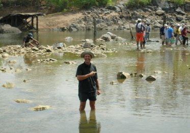 Back at our hotel around 7.30pm (where the first cold beer taken from the kitchen fridge didn't last very long) led to sixty minutes sorting-out the internet connections to past and existing Sharpe fans (some of whom have now been with us for over twelve years) and a brief report on proceedings to 'home-base' (which I know some Sharpe fans had the chance to read before we went off-line) before a shower and 'tiffin'. After some e-mail disappointments and some internet upsets (power failures, pirates, viruses etc) things were now set for our 'home-base' - Adam Paylor of www.95thRifles.com - to arrive and join us in Khajuraho. I left a variety of messages with various people pending the day of Adam's arrival - the only one that didn't get through to him was the one left at the 'modern' hotel - but we knew Adam had landed at the airport and arrived at the hotel through a cell-phone call from my spy with his ear to 'the jungle telegraph'. As is usual with Armoury 'guests', Adam was shown his room to drop off his bag, taken to be fed and watered at our expense at the local restaurant - just across the road - before being dropped in the 'deep end' (literally) next day with a 6am start for a potential 14-hour day for scenes involving a river-crossing 'under fire' and stand-by for 'underwater' to recover and retrieve any dropped and/or lost items of armoury by extras or cast. Crocodiles were the least of our problems so I thought not to mention them to Adam at the time - but I did mention the need to wear a hat and apply sun-bloc cream and Adam can testify to the results of forgetting both |
