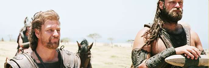 Photo by "Jesus", an extra on Troy, in Cabo San Lucas. Left to right: Sean (Odysseus), Jesus, and James Cosmo (General Glaucus) This picture, more pix and a set report (with spoilers) are at Orlando Bloom Files. |