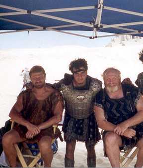 Photo by "Jesus", an extra on Troy, in Cabo San Lucas. Left to right: Sean (Odysseus), Jesus, and James Cosmo (General Glaucus) This picture, more pix and a set report (with spoilers) are at Orlando Bloom Files. |