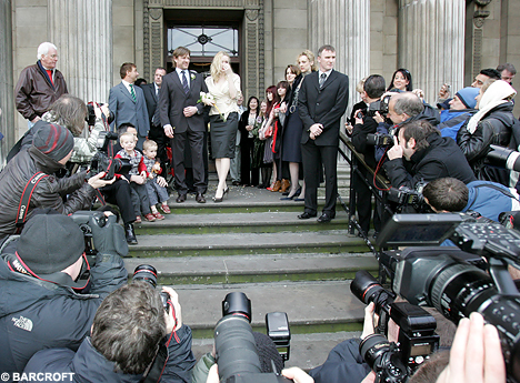 girlfriend 29-year-old Georgina Sutcliffe yesterday in a low key ceremony at